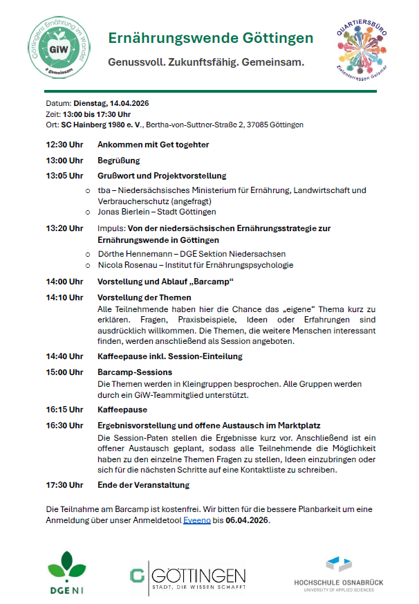 Wir freuen uns auf Sie/Euch, Ihre/Eure Perspektiven, Ihre/Eure Ideen – und darauf, gemeinsam die Ernährungswende Göttingens zu gestalten.
