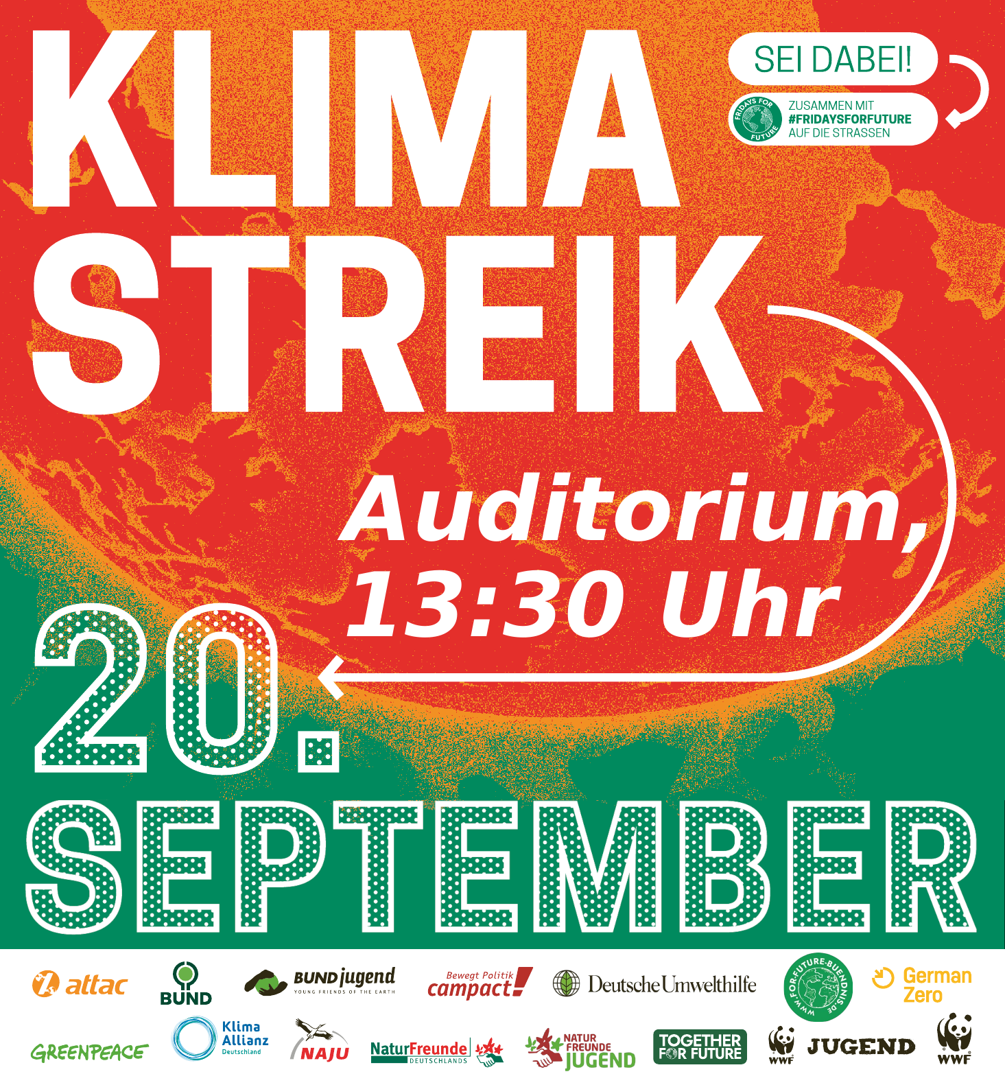 Wir können als Klimabewegung viel erreichen, wenn wir zu Hunderttausenden demonstrieren. Für Klimaschutz und soziale Gerechtigkeit, für Zukunftsinvestitionen und gegen das fossile Weiter-so gehen wir am Freitag, den 20. September mit Fridays For Future auf die Straße. Egal ob du schon oft dabei warst oder zum ersten Mal demonstrierst - wir brauchen dich!